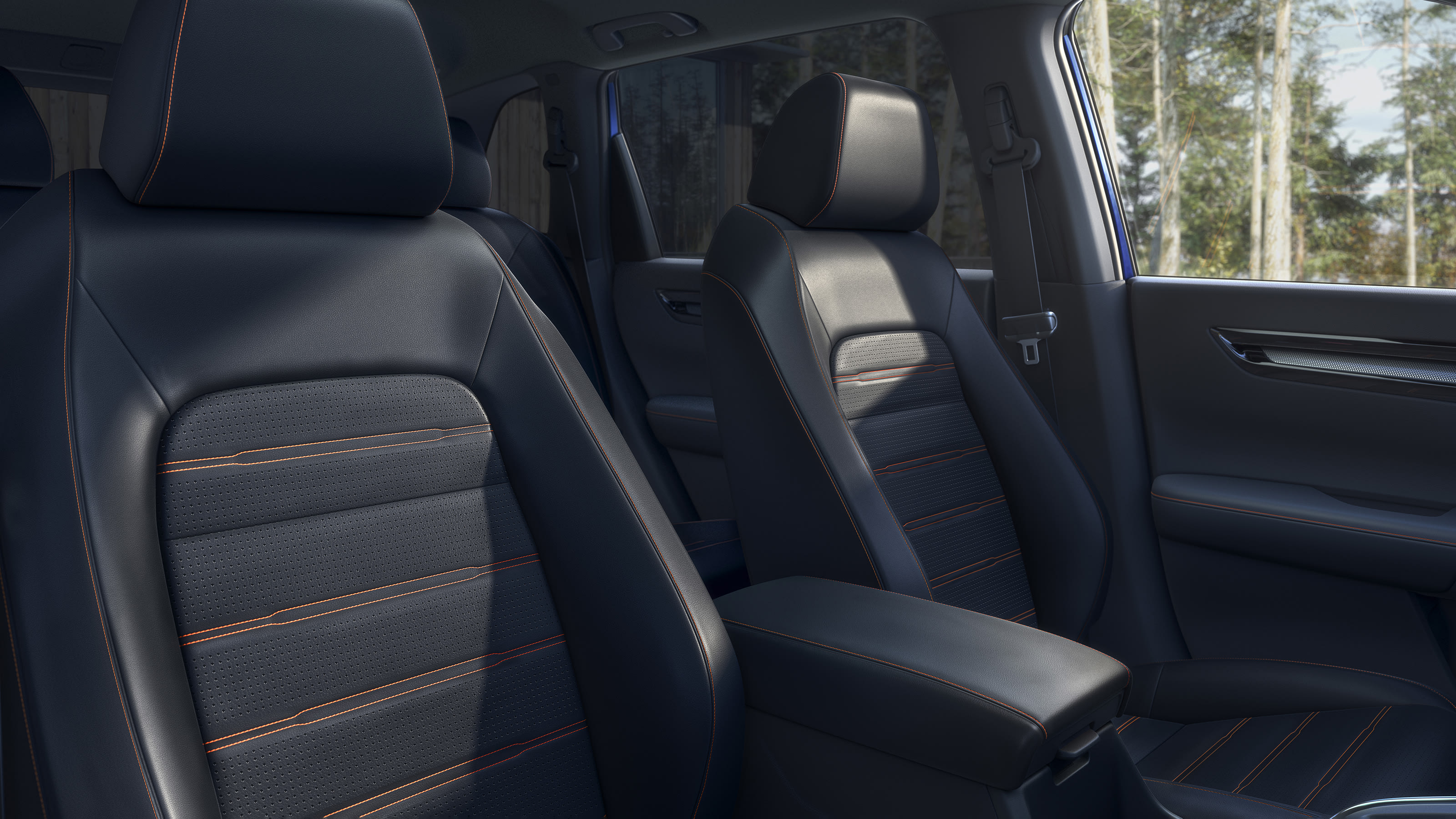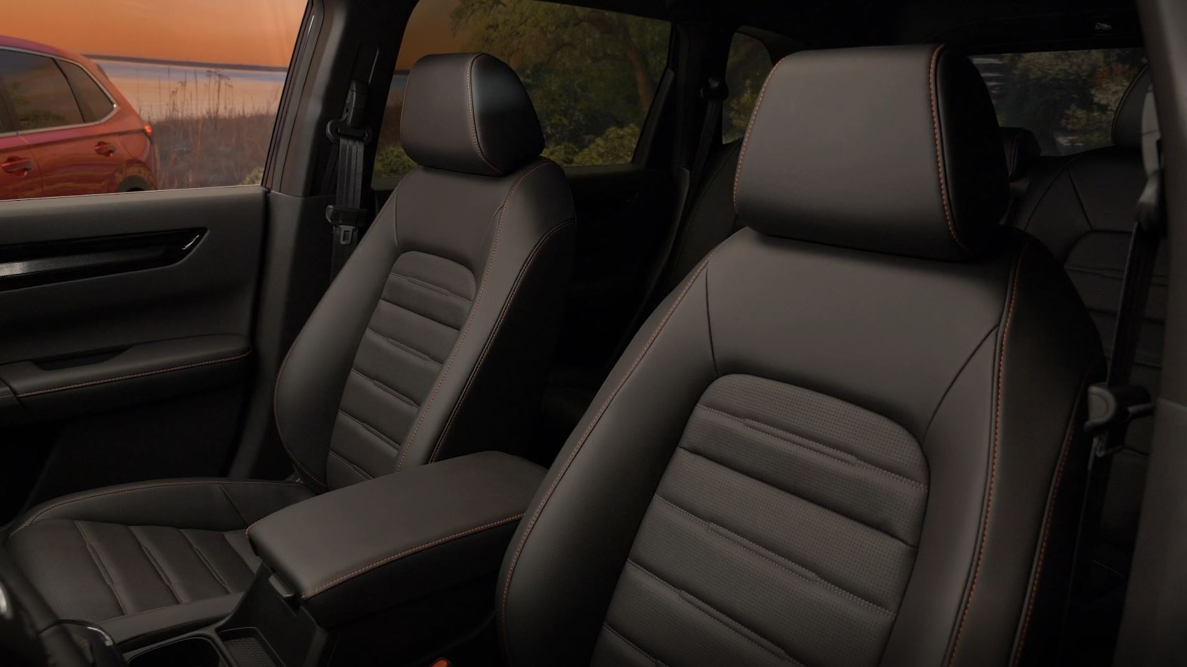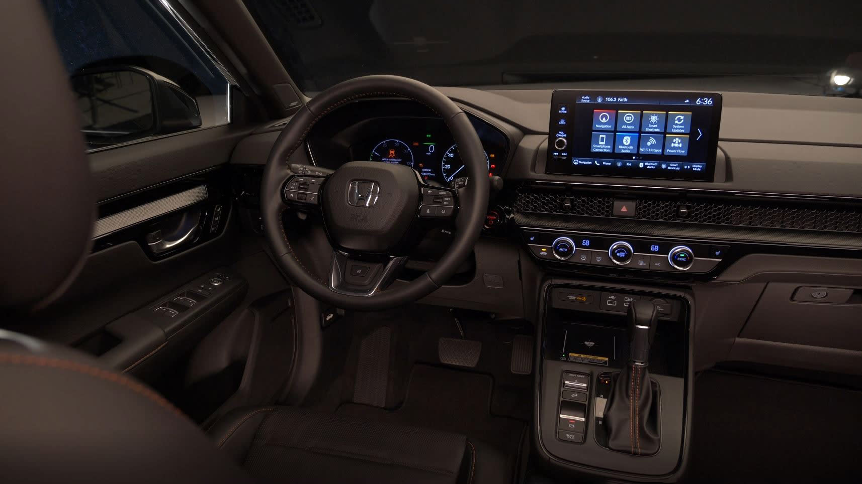 Honda also chose a two-tiered strategy for the new CR-V’s interior. The EX and Sport models come standard with 7-inch infotainment screens, while the better-equipped EX-L and Sport Touring get 9-inch systems with wireless device charging. The Civic inspiration is even more evident in the cabin thanks to the grille that runs nearly the entire width of the dashboard, disguising the heating and cooling vents. The seat designs are new, and Honda says they’ll reduce fatigue on longer stints. Digital instrumentation is now universal across the CR-V lineup, so there are no more analog gauges even on the EX.