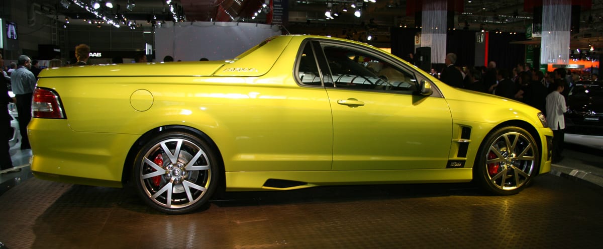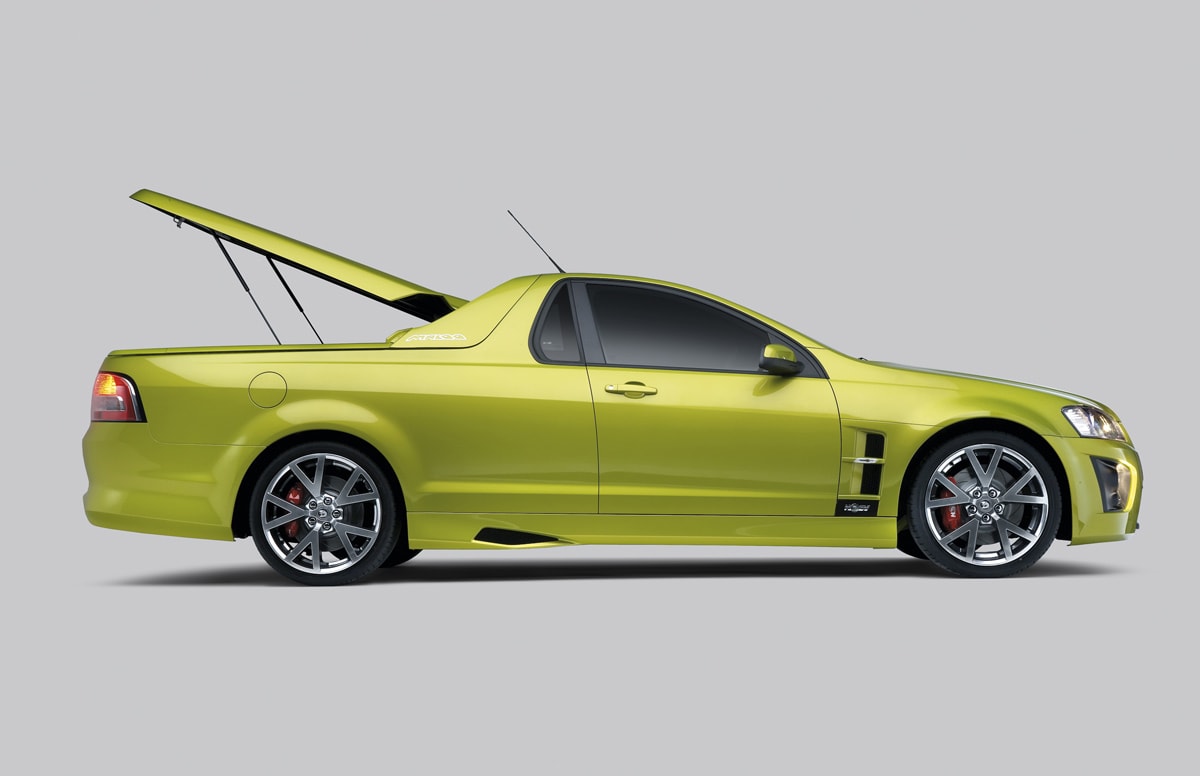 Those are the words of John Clark, Chief Engineer for the just unveiled Holden HSV Maloo R8 ute. Currently rotating on a stand in Sydney at the Australian International Motor Show, the HSV Maloo R8 looks like the combination of a Corvette and S-10, excepts it’s so much cooler than you would imagine such a bastard love child would be. Take one garden variety VE Ute, add a body kit gets the point across, a motorized rear tonneau cover that can be controlled via the key fob and, oh yeah, a 405 HP LS2 V8 to make things interesting, and you’ll begin to understand how Holden goes about making a Maloo. The trucklet, however, is worked by the HSV team, Holden’s equivalent of SRT, AMG, SVT, etc. This means the rear-wheel-drive HSV Maloo R8 should be able to carve an Aussie corner as well as it can ripple pavement behind its rear wheels in a straight line.